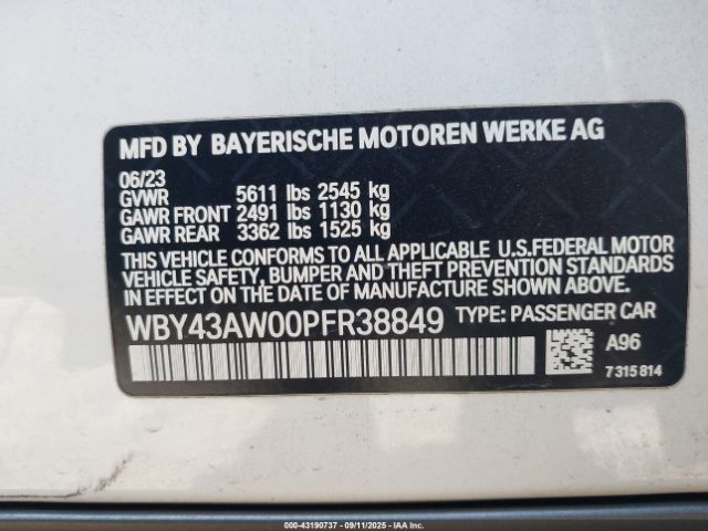 | VIN : WBY43AW00PFR38849 |