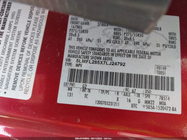 | VIN : 5LMFL285X7LJ24792 |