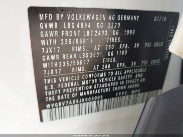 | VIN : WVGBV7AX9JK003009 |