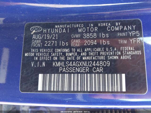 | VIN : KMHLS4AGXNU244809 |