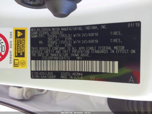 | VIN : 5TDJZRFH6KS581712 |
