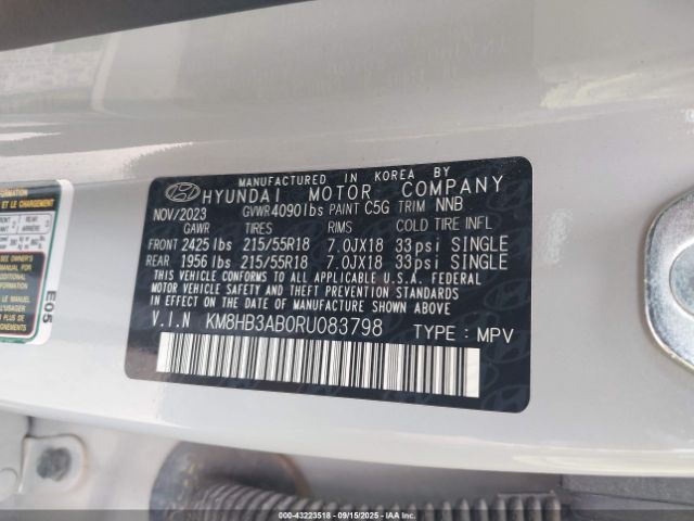 | VIN : KM8HB3AB0RU083798 |