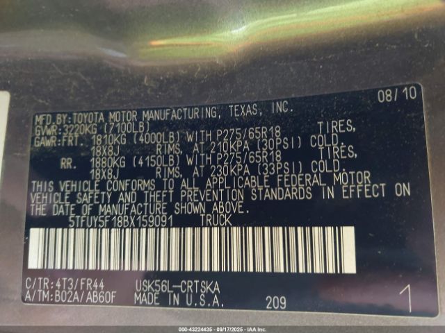 | VIN : 5TFUY5F18BX159091 |