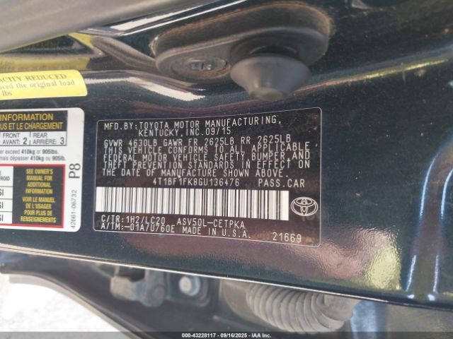| VIN : 4T1BF1FK8GU136476 |
