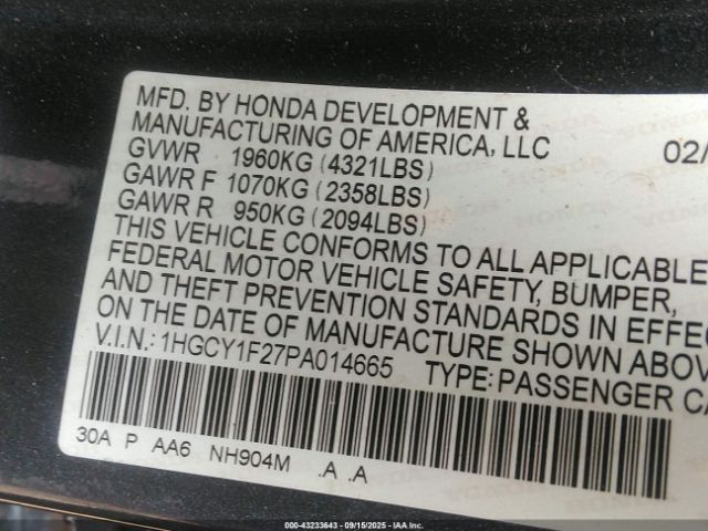 | VIN : 1HGCY1F27PA014665 |