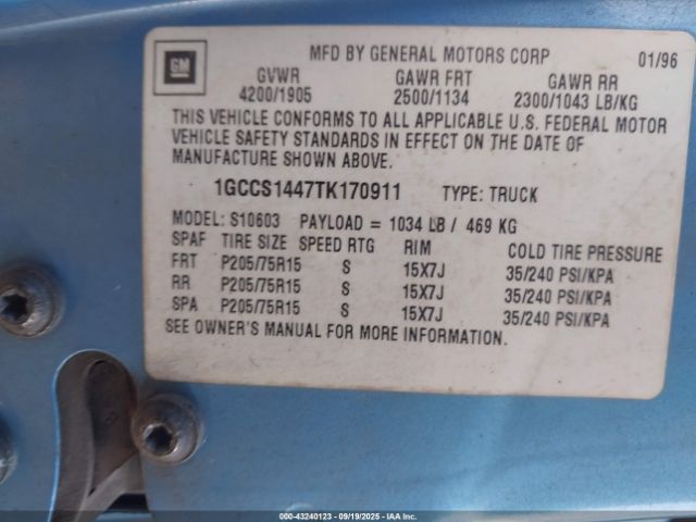 | VIN : 1GCCS1447TK170911 |