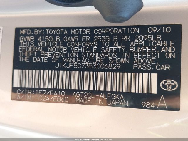 | VIN : JTKJF5C73B3006829 |