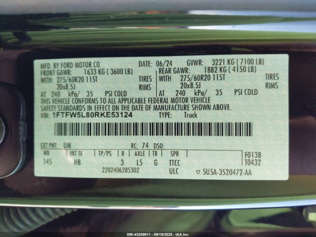 | VIN : 1FTFW5L80RKE53124 |