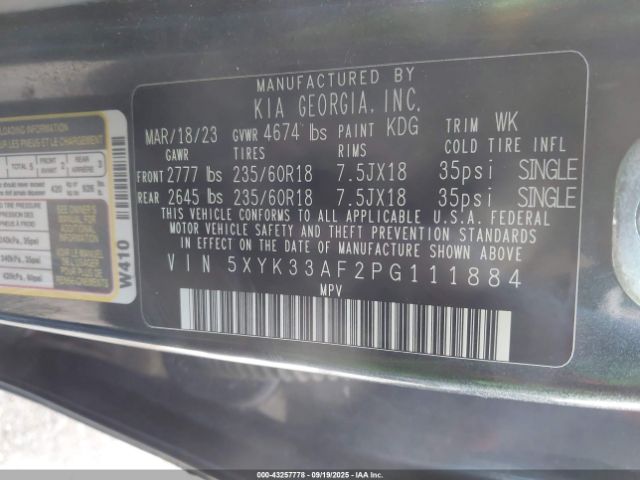 | VIN : 5XYK33AF2PG111884 |
