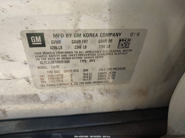 | VIN : KL7CJLSB7HB091680 |