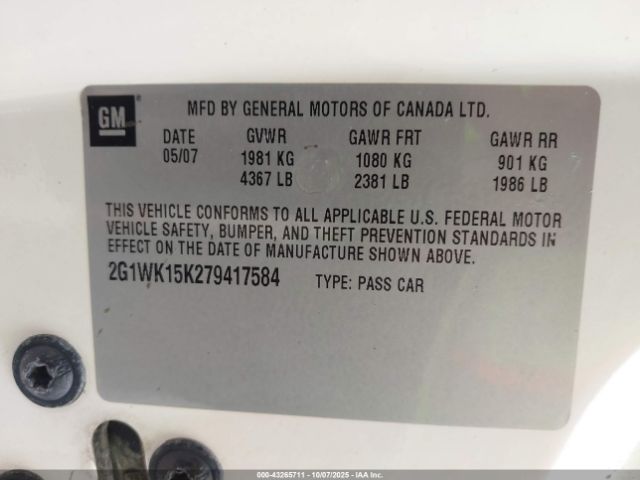 | VIN : 2G1WK15K279417584 |