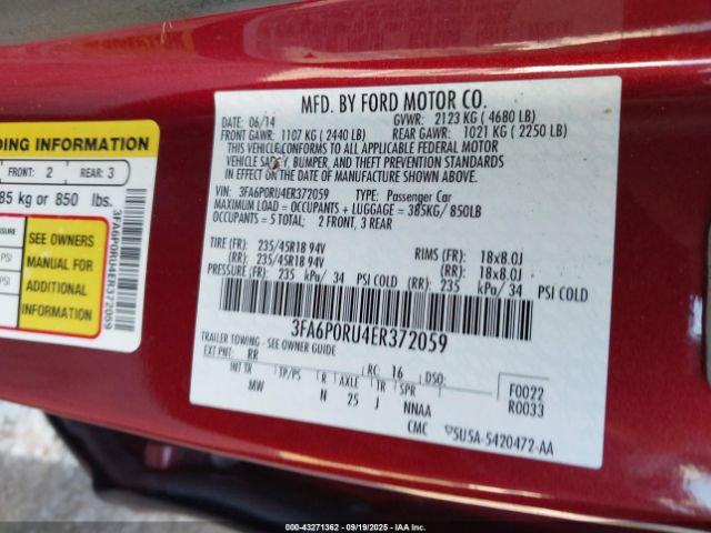 | VIN : 3FA6P0RU4ER372059 |