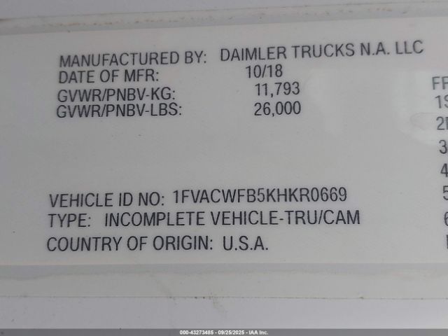 | VIN : 1FVACWFB5KHKR0669 |