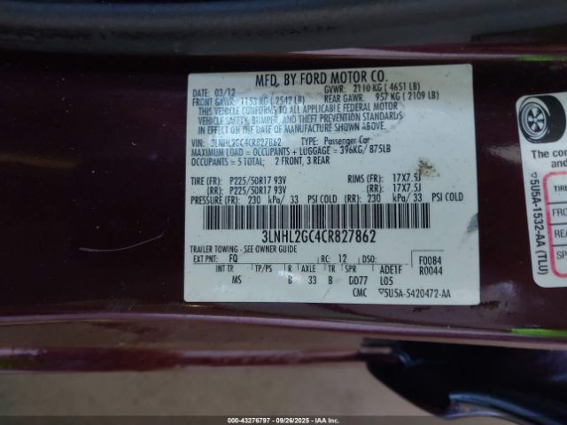 | VIN : 3LNHL2GC4CR827862 |