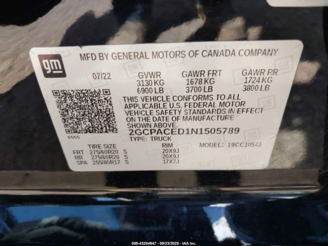 | VIN : 2GCPACED1N1505789 |