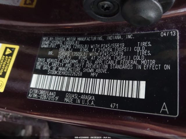 | VIN : 5TDDK3EHXDS226268 |