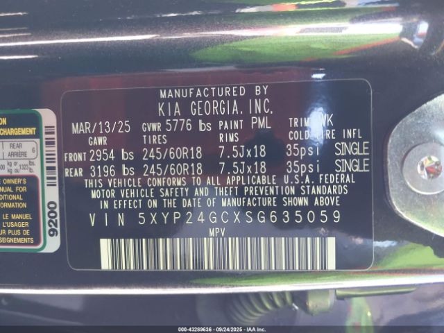 | VIN : 5XYP24GCXSG635059 |