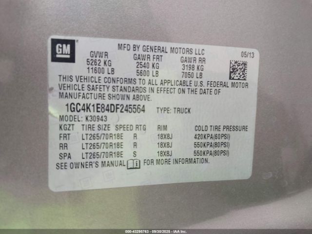 | VIN : 1GC4K1E84DF245564 |