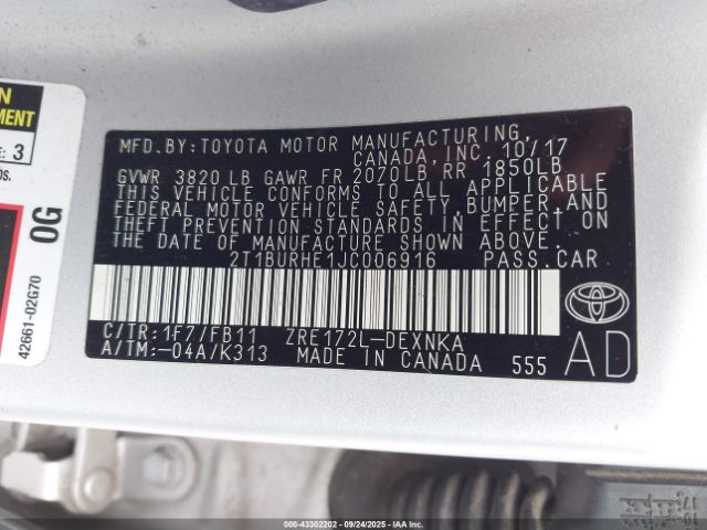 | VIN : 2T1BURHE1JC006916 |
