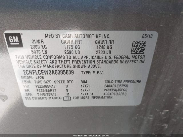| VIN : 2CNFLCEW3A6385039 |