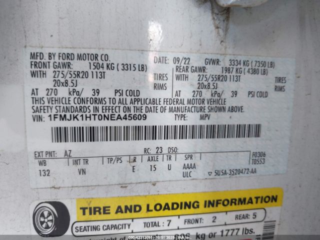 | VIN : 1FMJK1HT0NEA45609 |