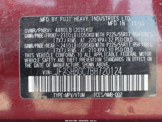| VIN : JF2SHBGC7BH720124 |