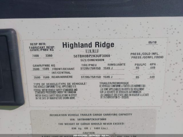 | VIN : 58TBH0BP2K3UF3069 |