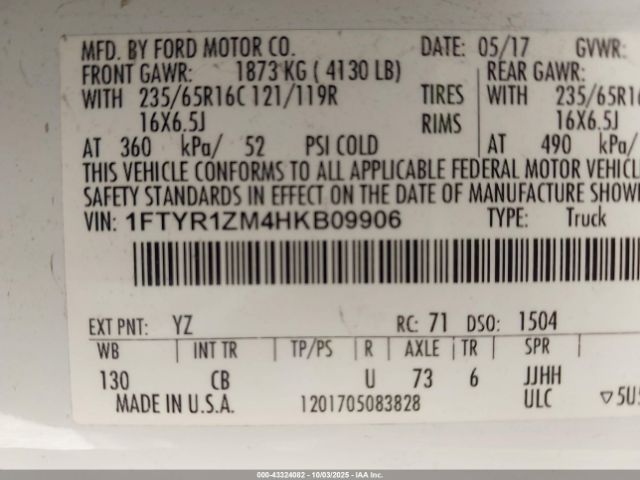 | VIN : 1FTYR1ZM4HKB09906 |