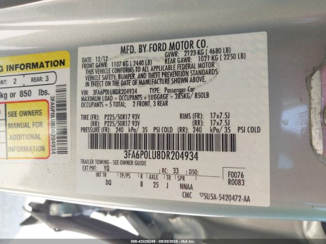 | VIN : 3FA6P0LU8DR204934 |
