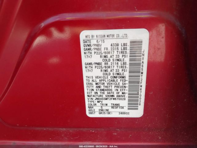 | VIN : JN8AS5MT2FW670028 |