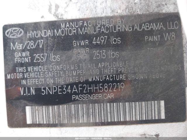| VIN : 5NPE34AF2HH582219 |