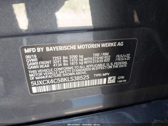 | VIN : 5UXCX4C58KLS38525 |