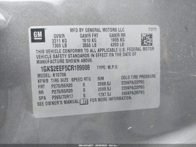 | VIN : 1GKS2EEF5CR189908 |