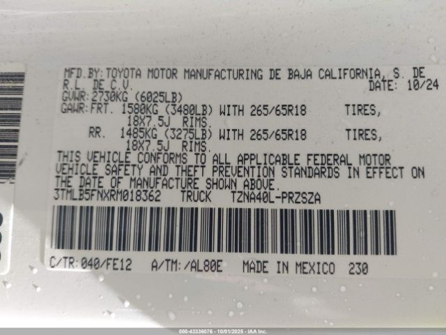 | VIN : 3TMLB5FNXRM018362 |