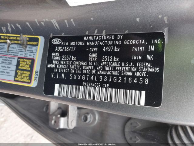| VIN : 5XXGT4L33JG216458 |