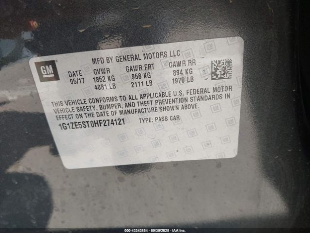 | VIN : 1G1ZE5ST0HF274121 |
