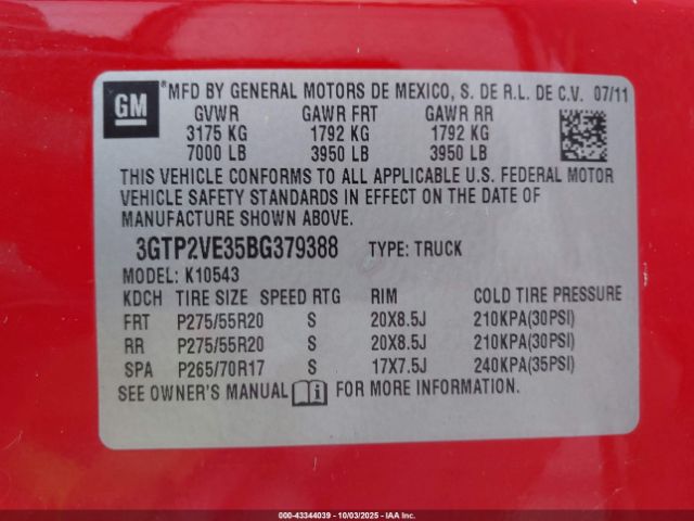 | VIN : 3GTP2VE35BG379388 |