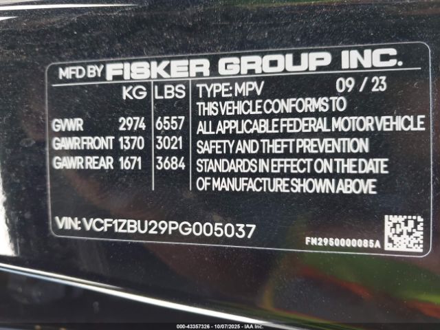 | VIN : VCF1ZBU29PG005037 |
