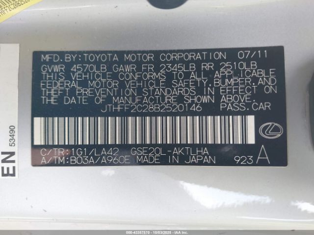 | VIN : JTHFF2C28B2520146 |
