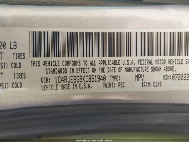 | VIN : 1C4RJEBG9KC851940 |
