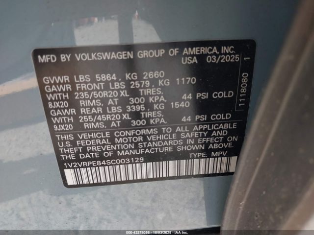 | VIN : 1V2VRPE84SC003129 |