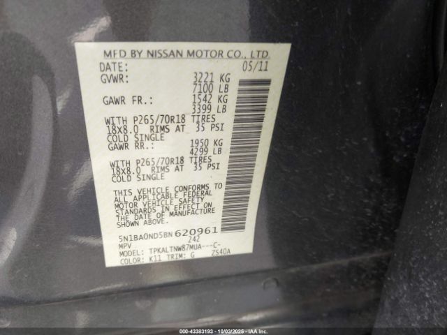 | VIN : 5N1BA0ND5BN620961 |