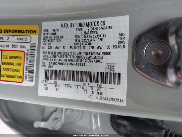 | VIN : 3FMCR9G61RRF40984 |