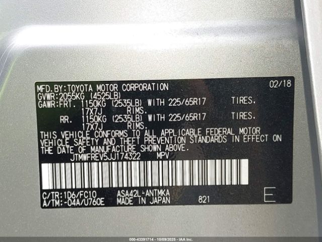 | VIN : JTMWFREV5JJ174322 |