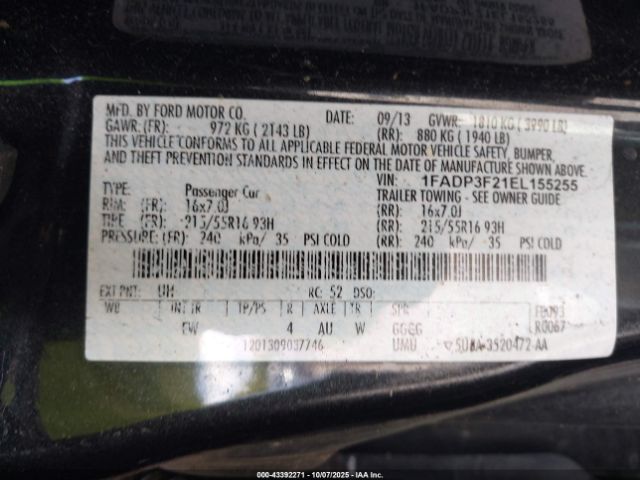 | VIN : 1FADP3F21EL155255 |
