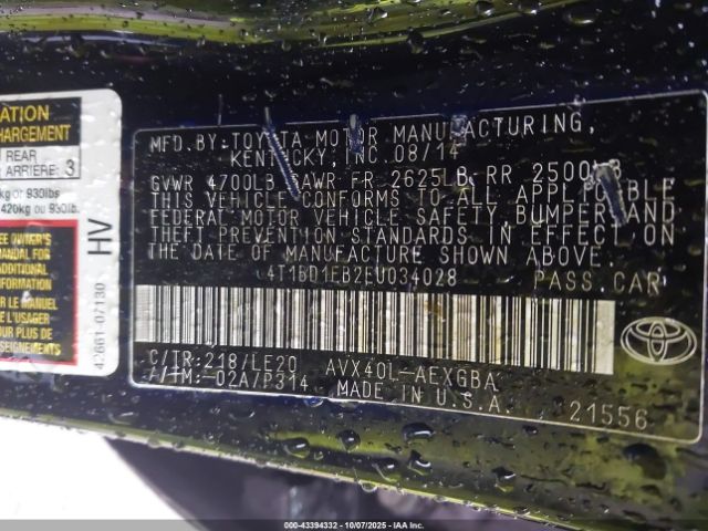 | VIN : 4T1BD1EB2EU034028 |