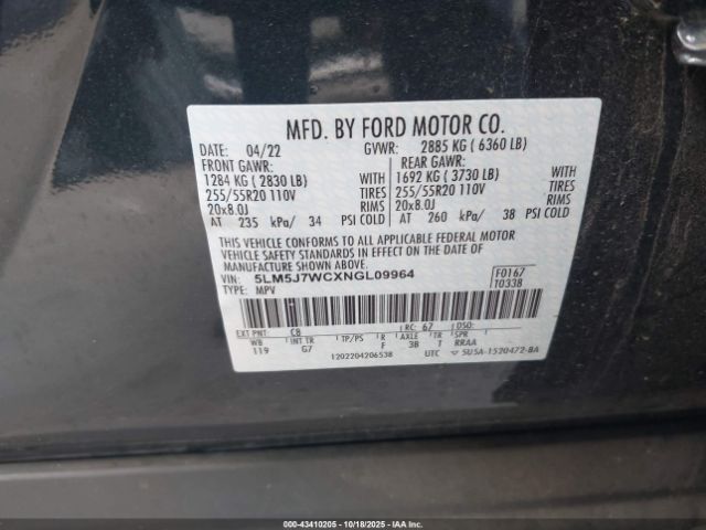 | VIN : 5LM5J7WCXNGL09964 |