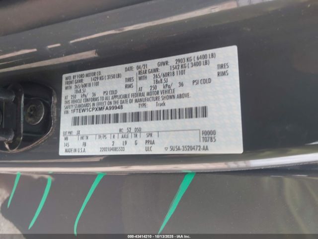| VIN : 1FTEW1CPXMFA99948 |