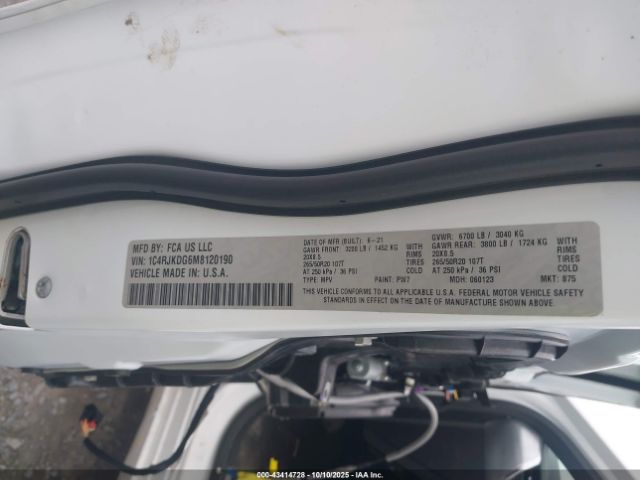| VIN : 1C4RJKDG6M8120190 |