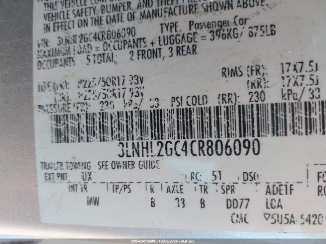 | VIN : 3LNHL2GC4CR806090 |